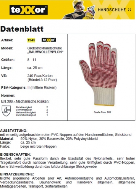 AUSSTATTUNG: mit einseitig aufgebrachten roten PVC-Noppen auf den Handinnenflächen, Strickbund