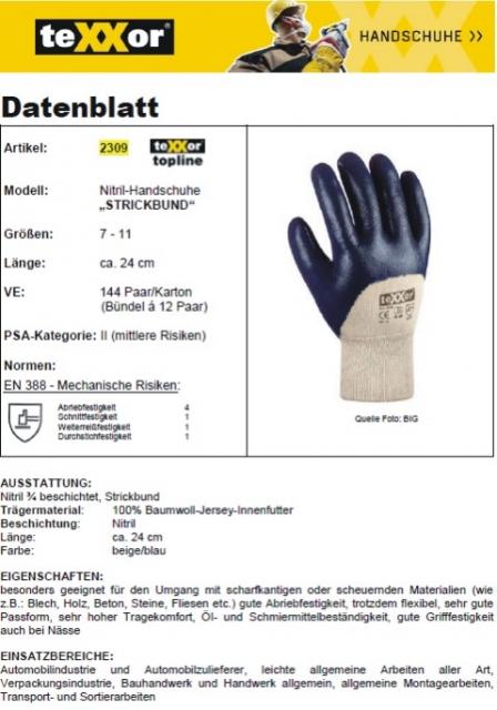 AUSSTATTUNG: Nitril ¾ beschichtet, Strickbund